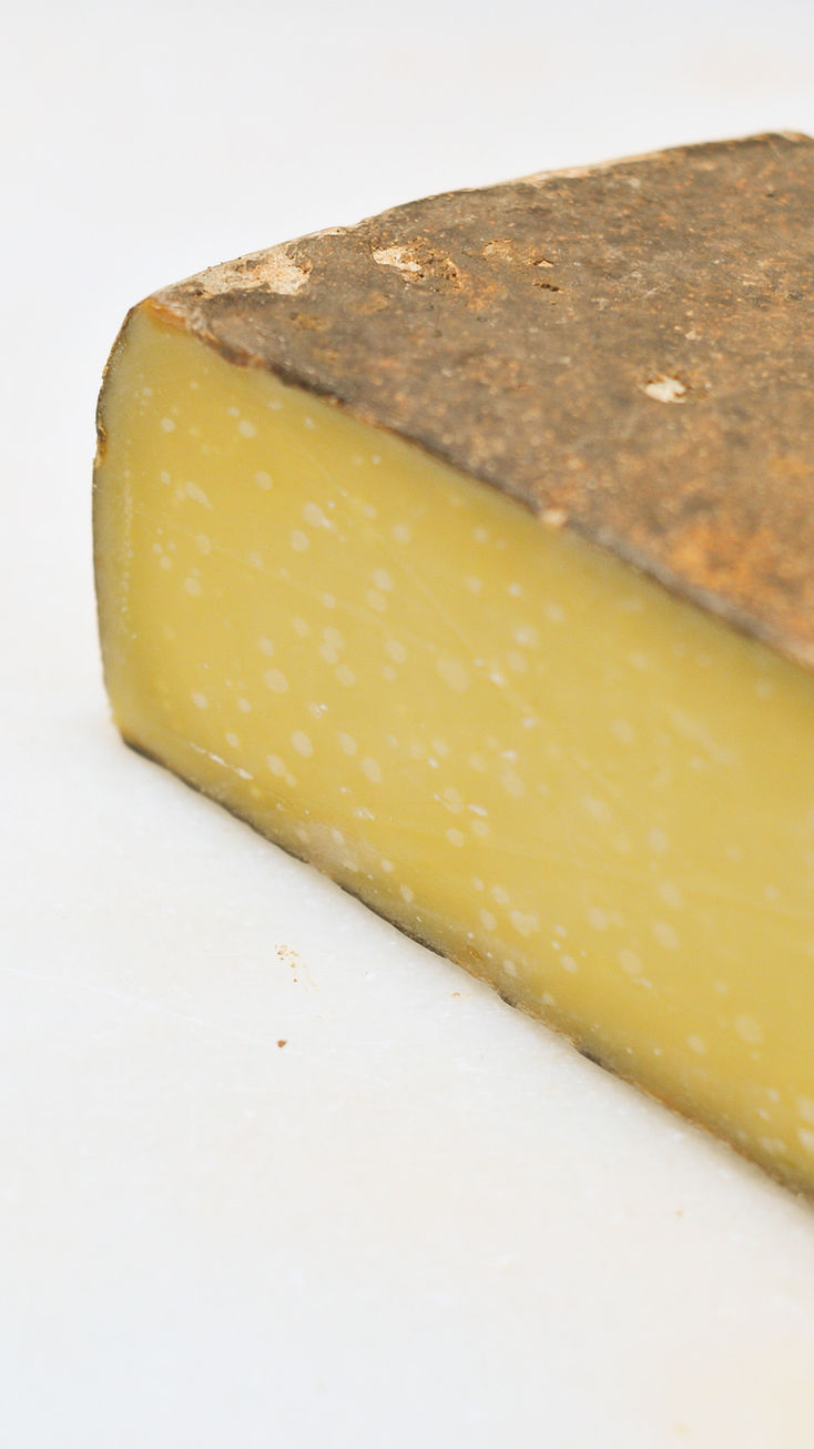 Procedente del corazón del Jura, en la región de Franche-Comté (Francia), este queso de vaca AOP se elabora con leche cruda de las montañas y madura durante 24 meses en cuevas naturales. Cada rueda desarrolla una corteza fina de color ámbar con ligeras motas, que envuelve una pasta firme, densa y ligeramente cristalina.