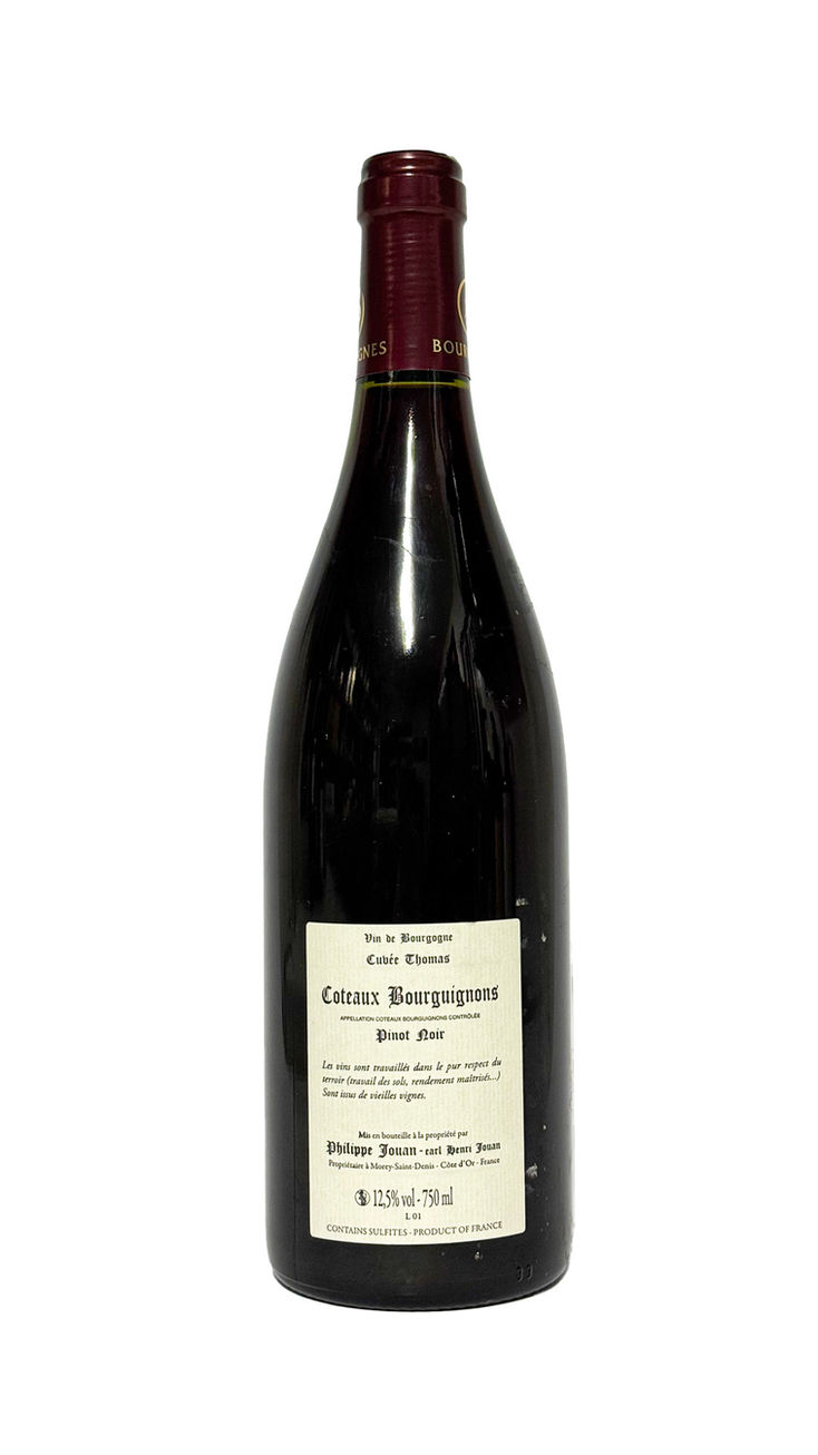 El Coteaux Bourguignons 2022 de Henri & Philippe Jouan, conocido como "Cuvée Thomas", es una expresión refinada de la tradición borgoñona. Proveniente de un pequeño domaine con viñedos de más de 40 años, este vino refleja un enfoque de mínima intervención y respeto por el terroir.